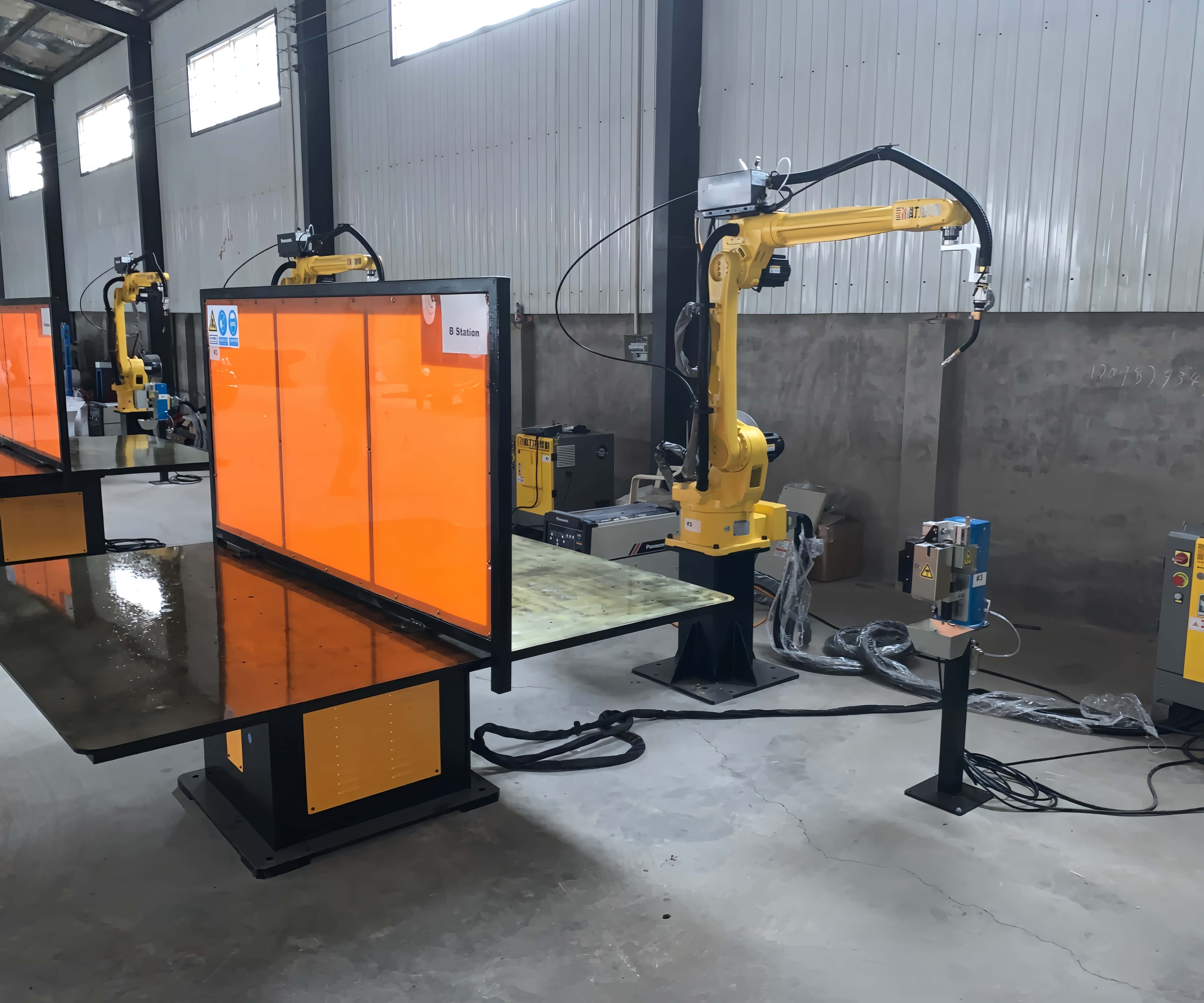 CONTINUOUS WELDING TORCH, DOUBLED EFFICIENCY — Say goodbye to waiting and achieve seamless welding in welding operations. One person on duty, dual workstation parallel, creating an extremely efficient fully automatic welding production line.The core of this workstation is an intelligent unit that integrates a horizontal rotary table,high-performance welding robot, and integrated welding system. The rotary table is equipped with two identical welding fixtures (workstation A and workstation B), with the robot located in the center position and the working range perfectly covering both workstations.